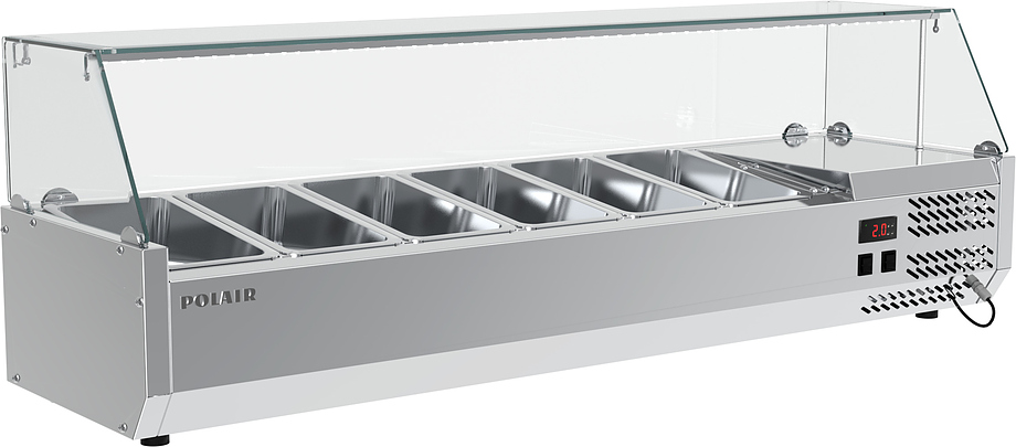 Холодильная витрина POLAIR VT2vEN 1/3 предназначена для демонстрации, охлаждения и кратковременного хранения ингредиентов для пиццы и салатов на предприятиях общественного питания и торговли. Модель оснащена стеклянным защитным колпаком. Обшивка корпуса шкафа изготовлена из нержавеющей стали и обеспечивает механическую прочность и долговечность витрины. Оборудование рассчитано на работу при температуре окружающей среды до 32 °C и относительной влажности воздуха до 80%.