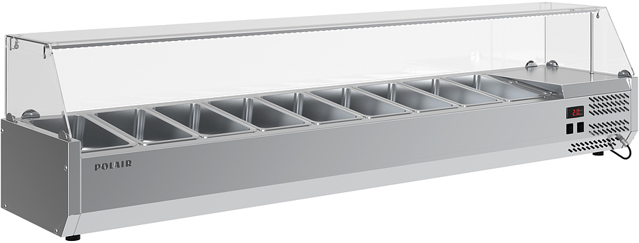 Холодильная витрина POLAIR VT3EN 1/3 предназначена для демонстрации, охлаждения и кратковременного хранения ингредиентов для пиццы и салатов на предприятиях общественного питания и торговли. Обшивка корпуса шкафа изготовлена из нержавеющей стали и обеспечивает механическую прочность и долговечность витрины. Оборудование рассчитано на работу при температуре окружающей среды до 32 °C и относительной влажности воздуха до 80%.