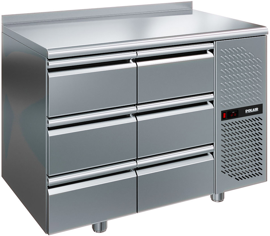 Холодильный стол POLAIR TM2GN-33-G серии Grande предназначен для хранения продуктов и обработки ингредиентов на рабочей поверхности на предприятиях общественного питания и торговли. Модель оснащена 6 ящиками среднего размера. Цельнозаливные корпус и ящики изготовлены из стали и обеспечивают механическую прочность, термоизоляцию, герметичность и долговечность стола. Оборудование рассчитано на работу при температуре окружающей среды до 43 °С и относительной влажности воздуха до 80%.