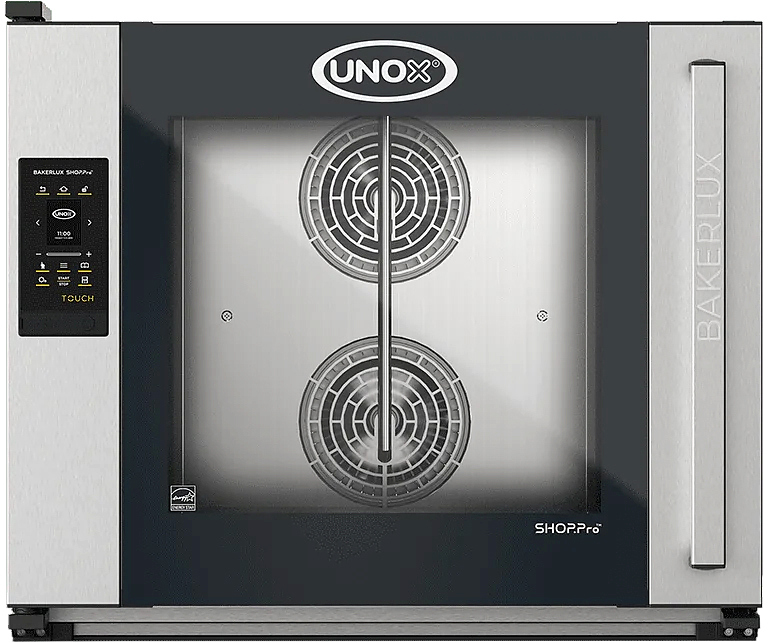 Печь конвекционная UNOX XEFR-06EU-ETRV-MT Vittoria серии BAKERLUX SHOP.Pro предназначена для допекания замороженных изделий и выпечки любых хлебобулочных и кондитерских изделий полного цикла на предприятиях общественного питания и торговли, в пекарнях и кондитерских. Модель оснащена электронным управлением с сенсорным ЖК-дисплеем диагональю 2,4" и светодиодным освещением камеры. Камера выполнена из нержавеющей стали AISI 304, направляющие - из гнутого стального L-образного листа.
