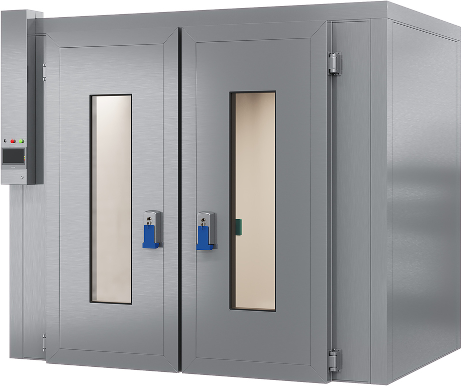 Камера отложенной расстойки POLAIR CRP2.6080.T2 inox серии Bakery CRP предназначена для отложенной расстойки на предприятиях общественного питания и торговли. Процесс отложенной расстойки в автоматическом режиме включает фазы замедления ферментации при охлаждении до -5 °C, хранение в охлажденном виде, пробуждения и начала ферментации, а затем расстойки перед выпечкой при температуре до 35 °C. Наружные и внутренние обшивки панелей камеры выполнены из нержавеющей стали.