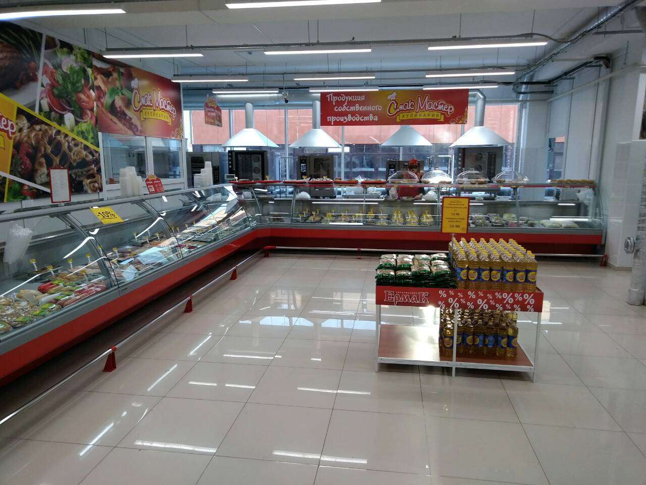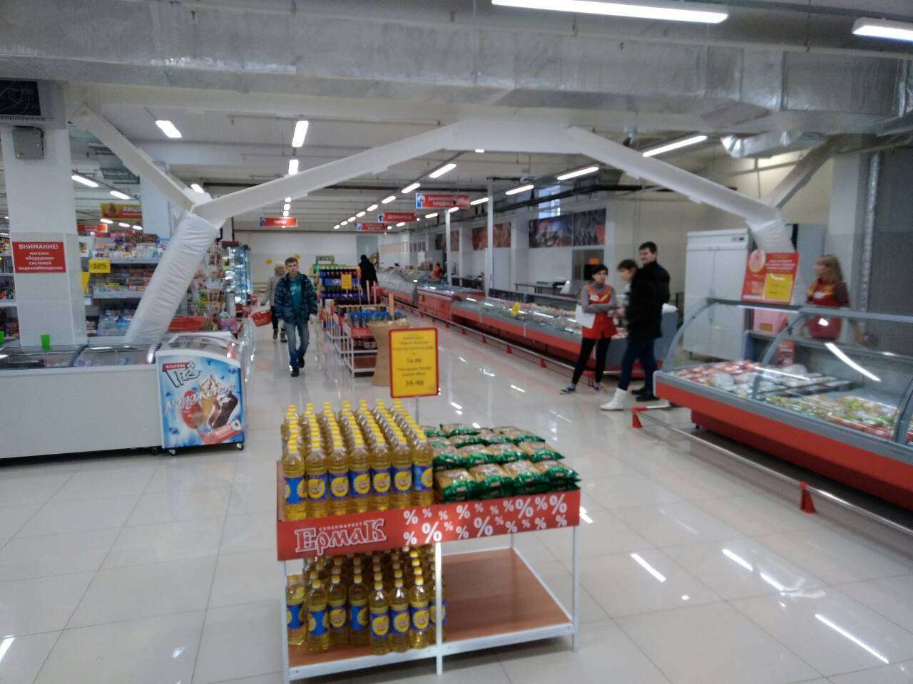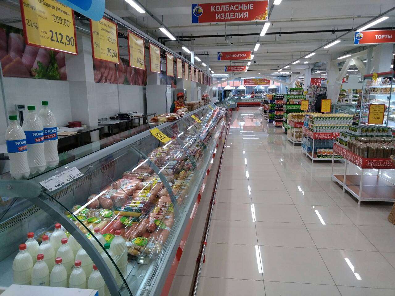Перед новым годом наши постоянные клиенты - сеть супермаркетов "Ермак" - открыли новый магазин в формате гипермаркета. Новый "Ермак" получил приставку "мега" и стал называться "Мега Ермак". Площадь магазина 1 700 кв.метров. Это был очень масштабный проект. Мы полностью оснастили гипермаркет торговым, холодильным и технологическим оборудованием. Получилось здорово. Желаем новому гипермаркету процветания!