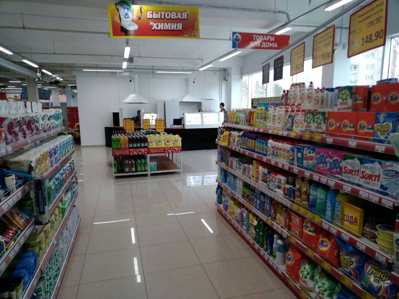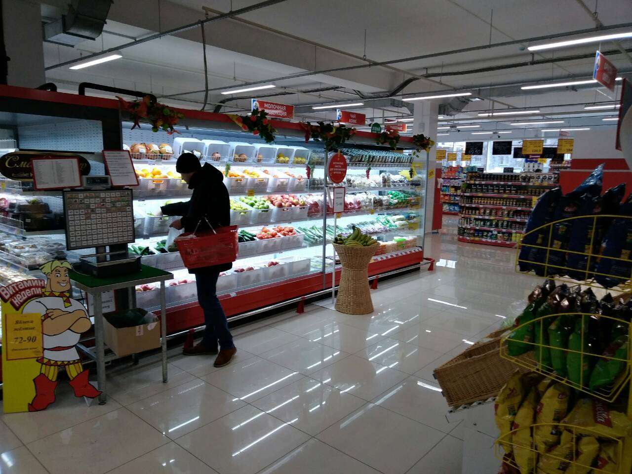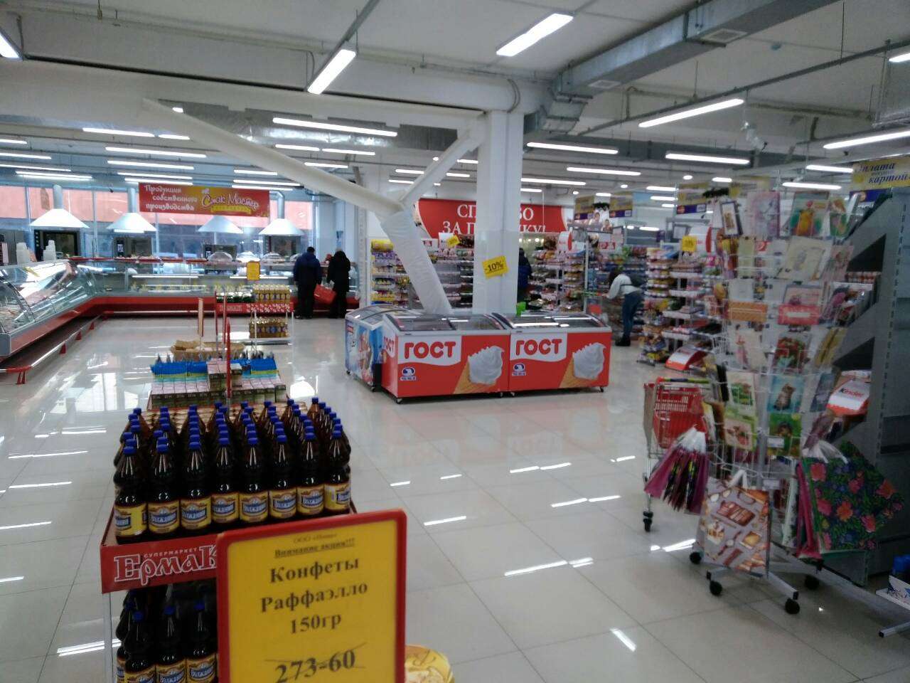 Перед новым годом наши постоянные клиенты - сеть супермаркетов "Ермак" - открыли новый магазин в формате гипермаркета. Новый "Ермак" получил приставку "мега" и стал называться "Мега Ермак". Площадь магазина 1 700 кв.метров. Это был очень масштабный проект. Мы полностью оснастили гипермаркет торговым, холодильным и технологическим оборудованием. Получилось здорово. Желаем новому гипермаркету процветания!